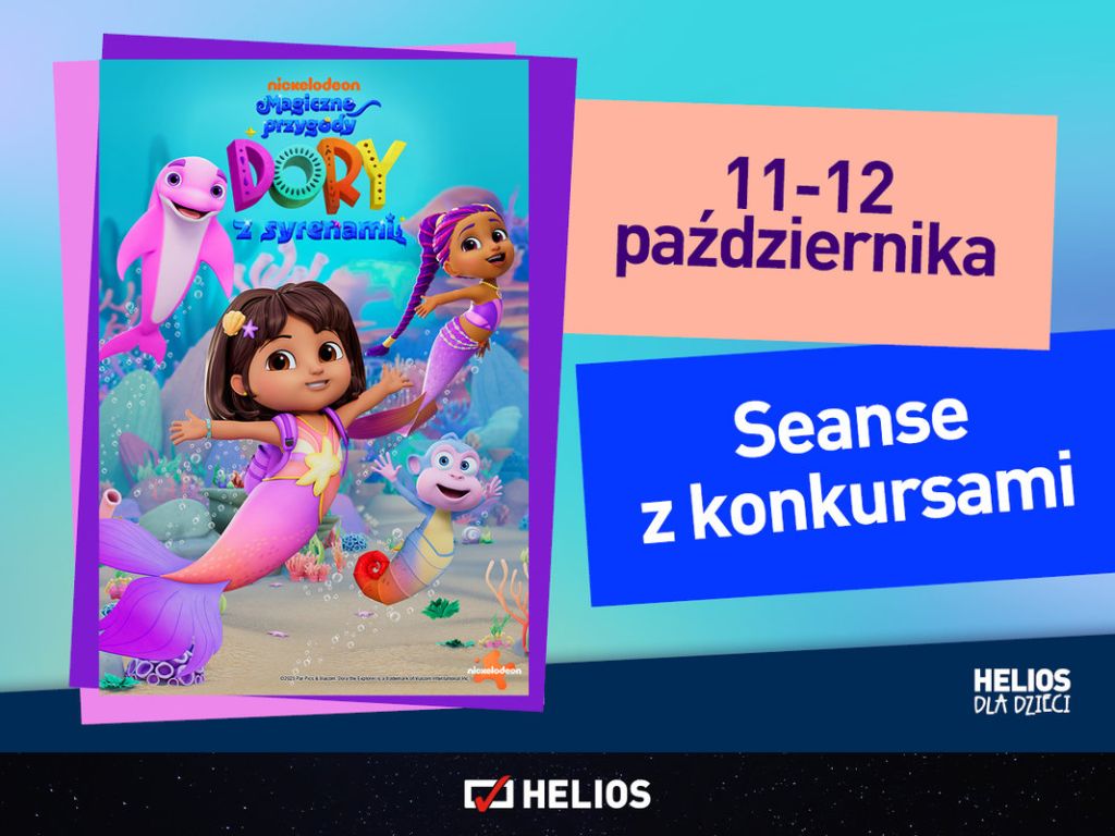 Sieć kin przygotowała także ofertę dla najmłodszych kinomanów. „Super Charlie” to animacja o chłopcu, który marzy, by walczyć ze złem u boku swojego taty. Gdy na świecie pojawia się jego młodszy brat Charlie, posiadający supermoce, wszystko się zmienia. W międzyczasie ich miastu zaczyna grozić niebezpieczeństwo, dlatego bracia – mimo różnic – muszą działać razem, by je ocalić. Ponadto w sobotę i niedzielę, 11 i 12 października, w ramach cyklu Helios dla Dzieci odbędą się seanse „Magiczne przygody Dory z syrenami”. To wyjątkowe wydarzenie kinowe z premierowymi odcinkami przygód lubianej bohaterki, którym towarzyszą quizy i zagadki dla najmłodszych.