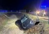 Nieporęt. Kierowca Kii uderzył w ogrodzenie i zawisł na skarpie zbiornika retencyjnego. 21-latek trafił do szpitala