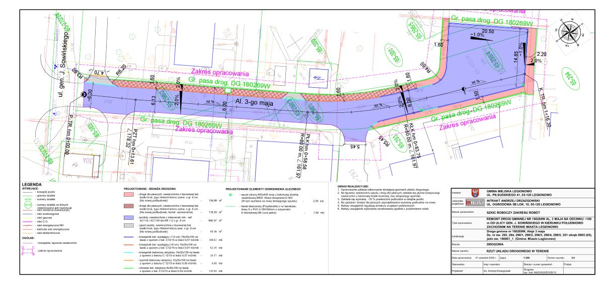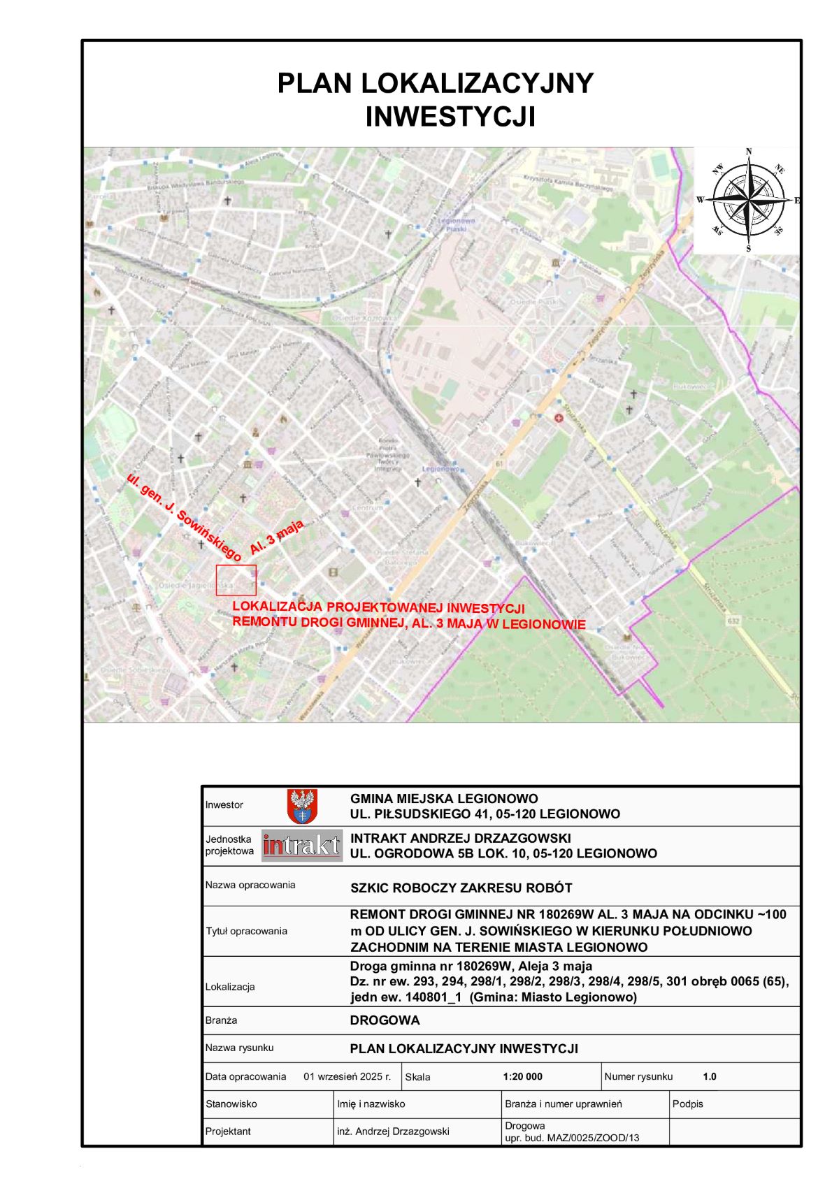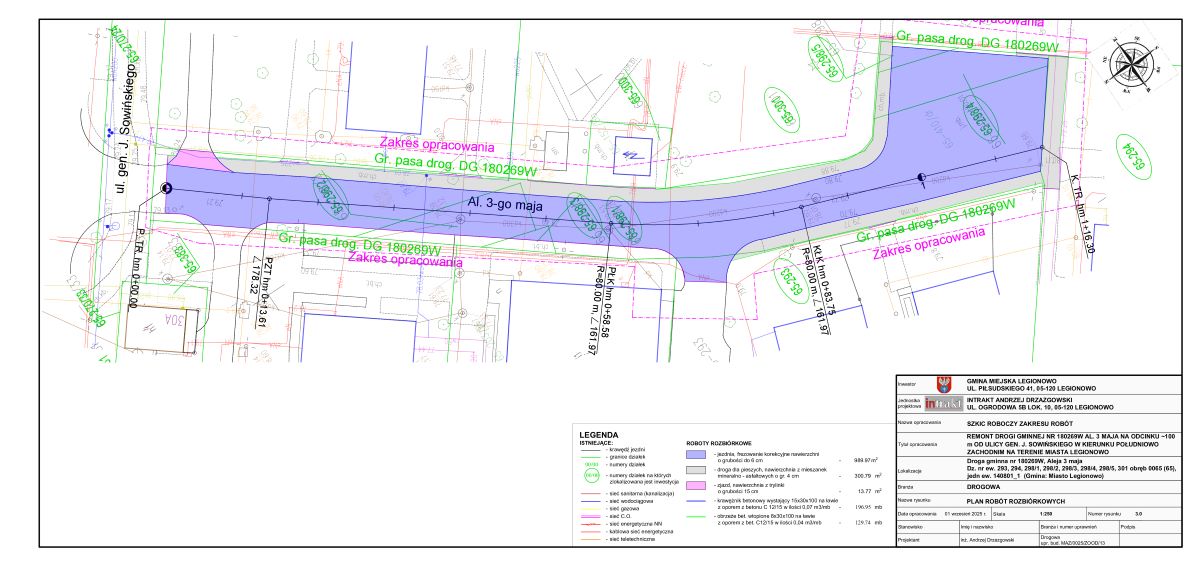 Aleja 3-go Maja w Legionowie zostanie zmodernizowana na mierzącym 100 metrów odcinku pomiędzy ulicami generała Józefa Sowińskiego i Królowej Jadwigi. Droga zyska nową nakładkę asfaltową, a na przylegających do niej chodnikach i zjazdach do posesji ułożona zostanie kostka betonowa. Fragment tej ulicy zostanie również odwodniony.