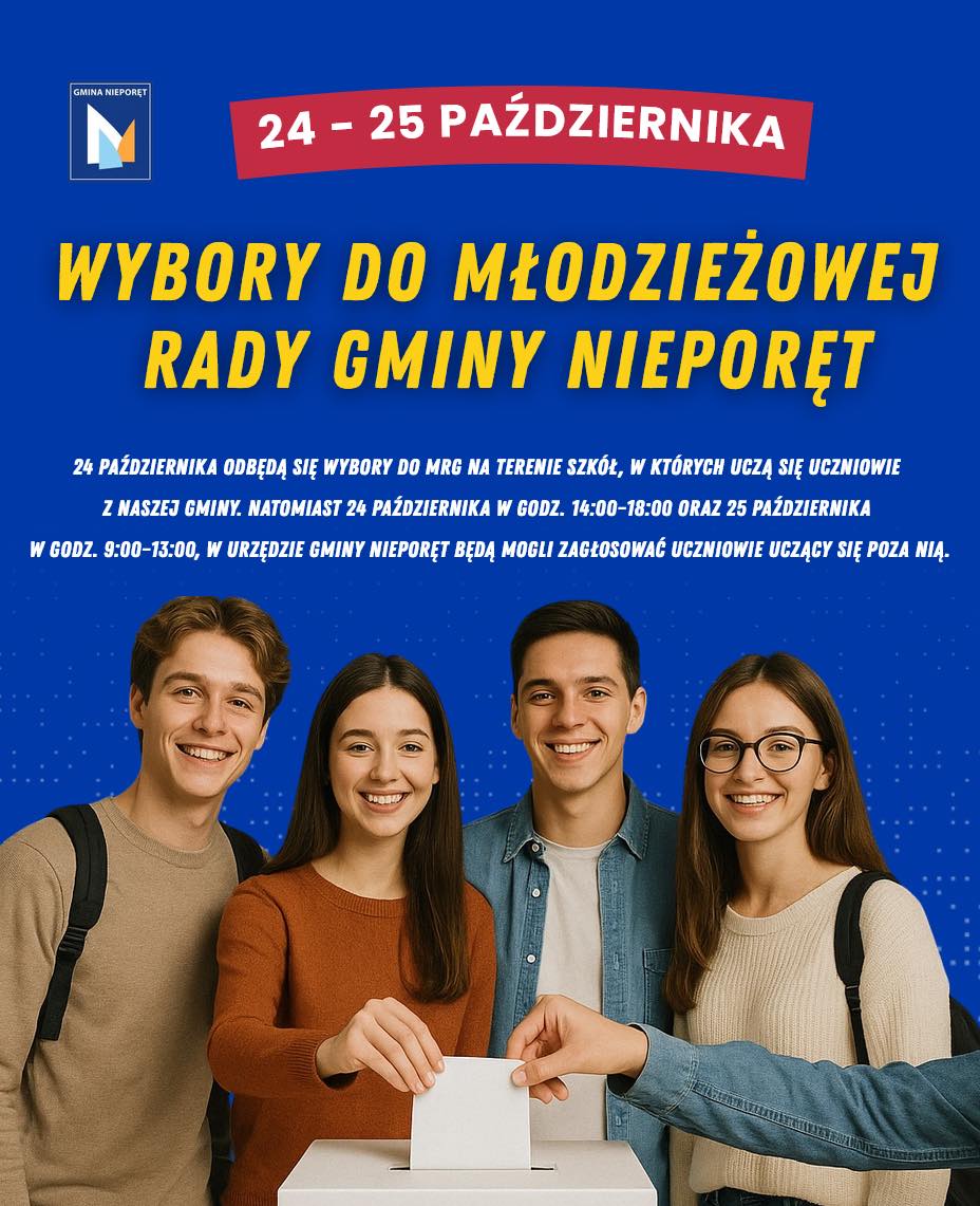 Jak poinformował w komunikacie Urząd Gminy Nieporęt już w piątek (24 października 2025 r.) odbędą się wybory do Młodzieżowej Rady Gminy na terenie szkół, w których uczą się uczniowie z gminy Nieporęt. Dodatkowo 24 października w godz. 14:00–18:00 oraz 25 października w godz. 9:00–13:00, w Urzędzie Gminy Nieporęt będą mogli zagłosować uczniowie uczący się poza gminą.